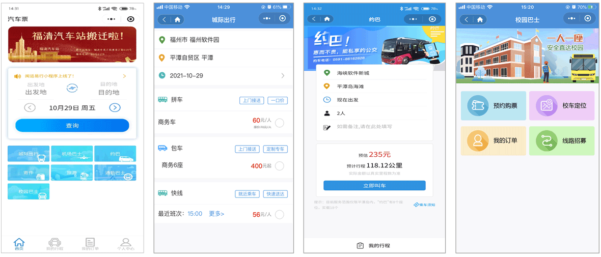 当前已在福州软件园完成建设了文山里站、创业园站、行政服务中心等3个智慧接驳中心的建设工作,同时开通了屏山、祥坂、金山等多条通勤快线及地铁接驳线,为园区员工及周边群众提供了线路查询、车辆定位、到站预报、换乘查询、快捷充电等便民服务;上线至今已累计服务旅客10余万人次,极大提升了园区员工的通勤效率。 |